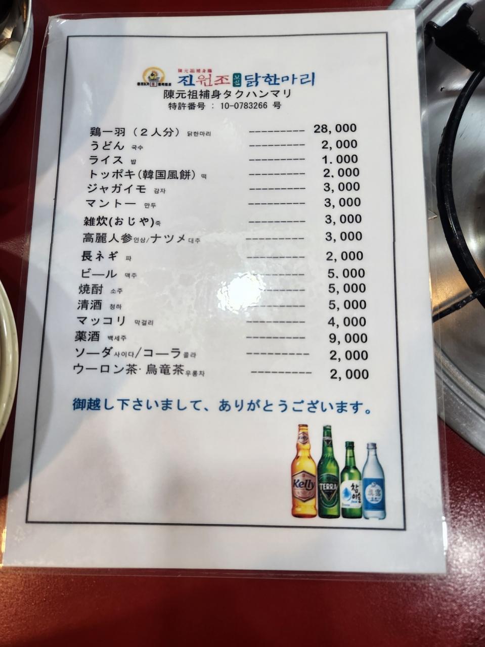 初めてのお店ですチンウォンジョポシンタッカンマリ (陳元祖補身タッカンマリ) (本店) 韓国料理