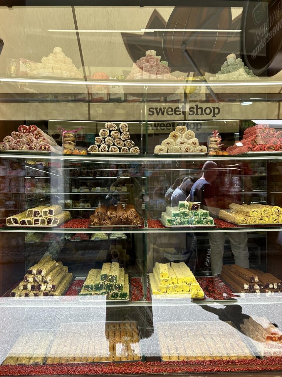 色鮮やかなお菓子。イスラム側はホテル出てすぐなので朝晩散歩。トルココーヒーで休憩も。