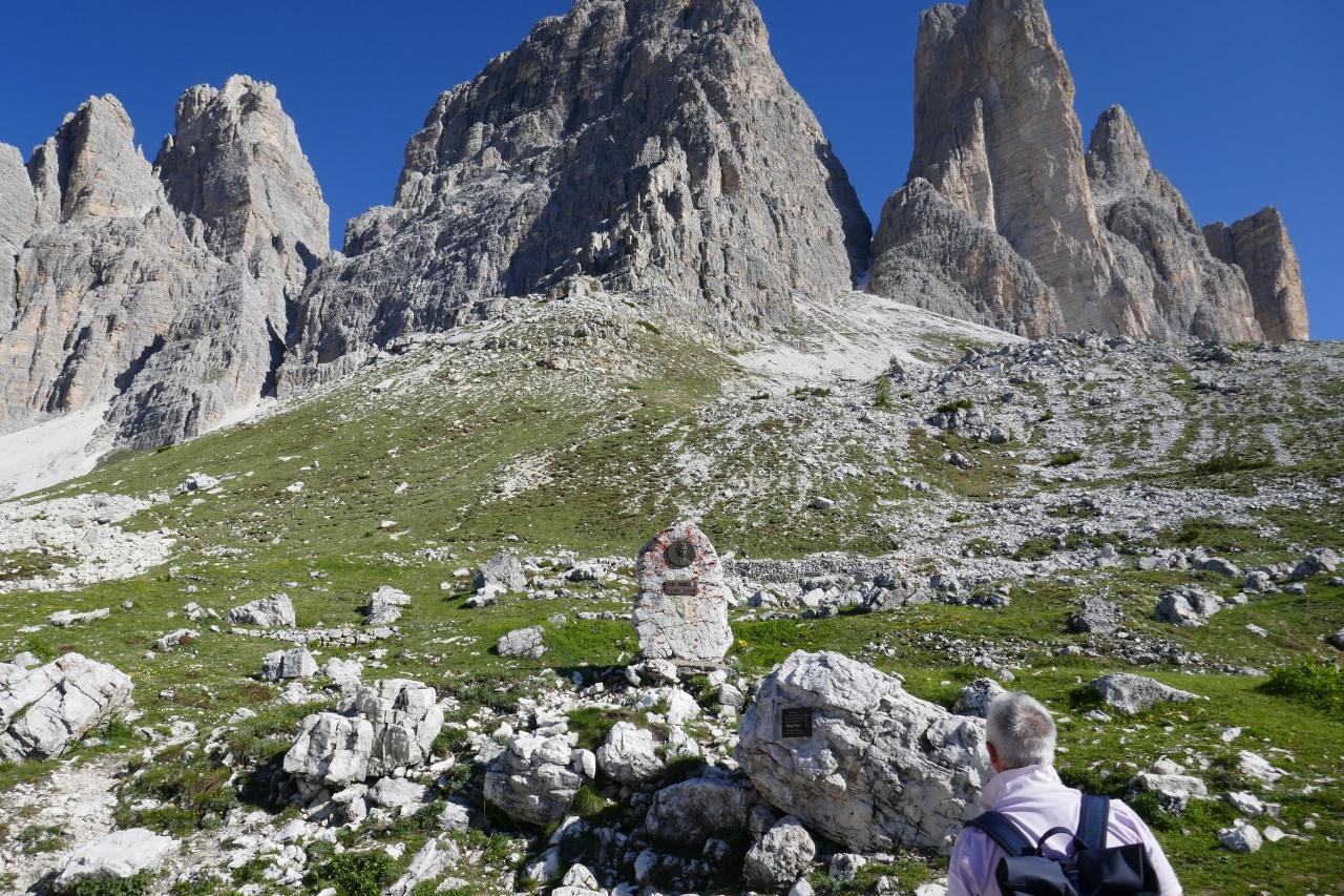 岩峰トレ・チメ・ディ・ラバァレードを望むハイキングです。