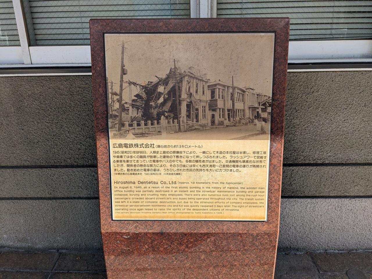 広電本社も原爆で半壊したことを伝えるパネル・・・そんななか、広電が創立した家政女学校の生徒が、電車の運行再開に奮闘した話を思い出した。