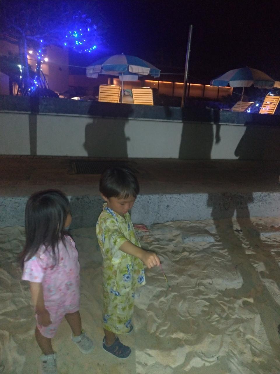 それよりも、ナイトプールに入っている人が結構いてびっくり(花火の場所は、プールの目の前だったので、プールで遊んでいる人たちの声がよく聞こえます)。