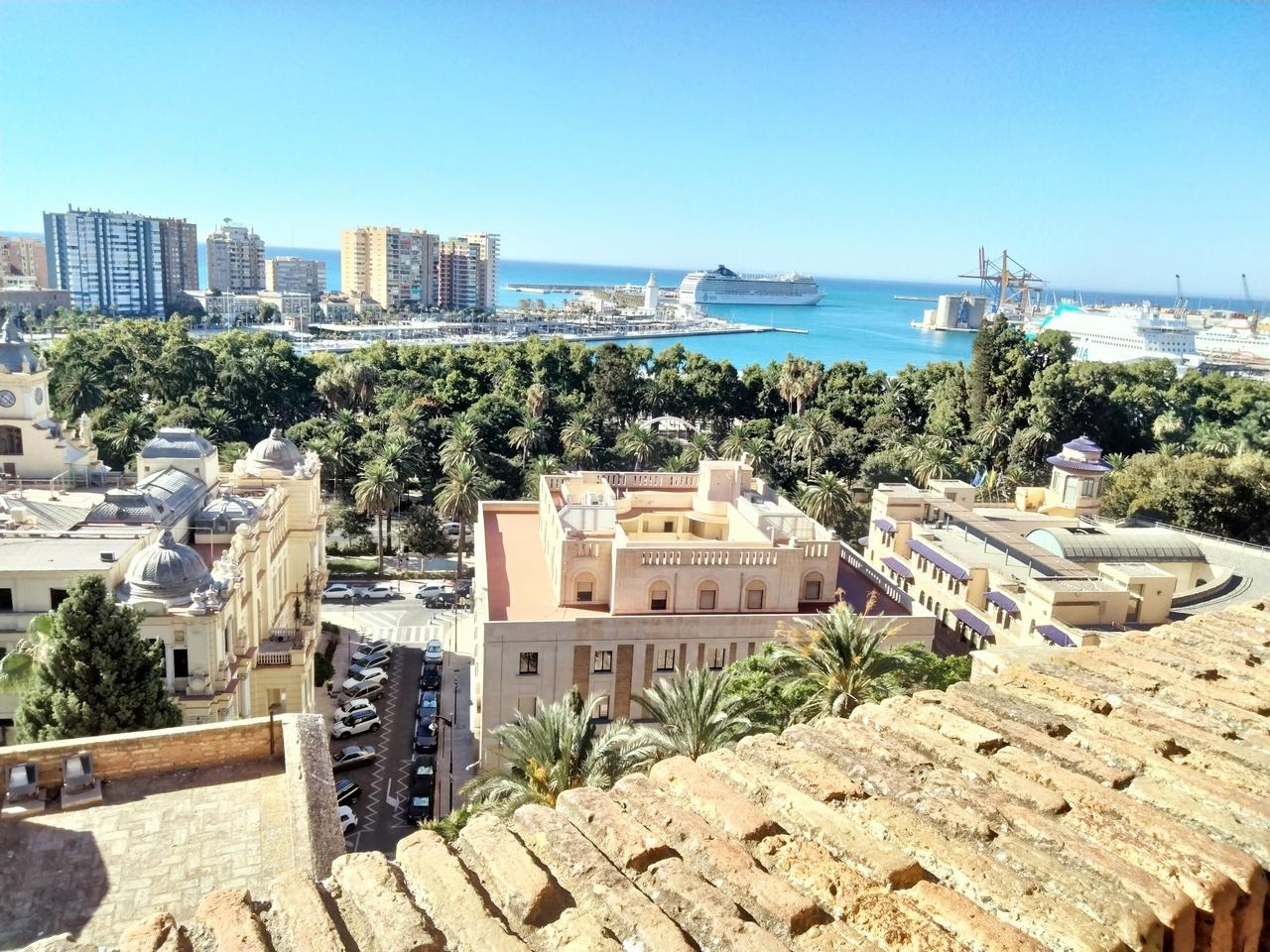 翌日 マラガのスーパーとアルカサバ を見学。海には豪華客船が停泊していました。