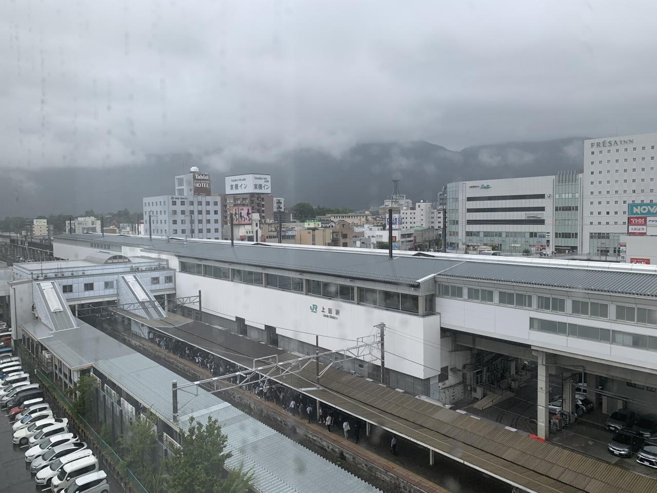 今回の部屋、窓の外は千曲川ではなく新幹線の上田駅です。