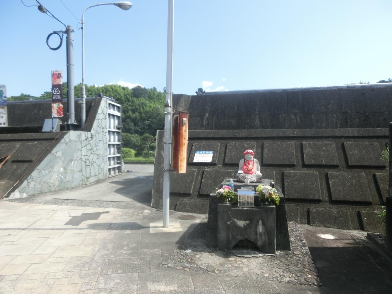 堤防の出入り口では、お地蔵さんが水害から町を守っています