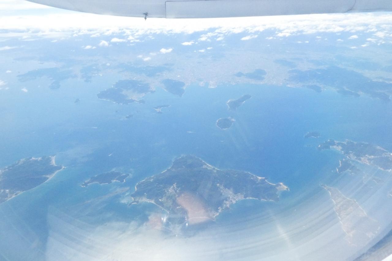 特に理由はないですがいつも右側の窓際なので、今回は左側の窓際にしています。プロペラ機のいいところは翼が上にあるので、一応景色は楽しめることですね。