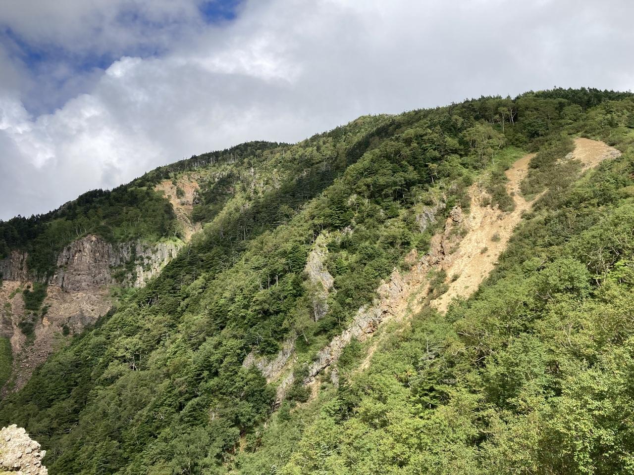 森林限界まで来るとやや角度は上がってきますが、それでも急登というほどではないです。