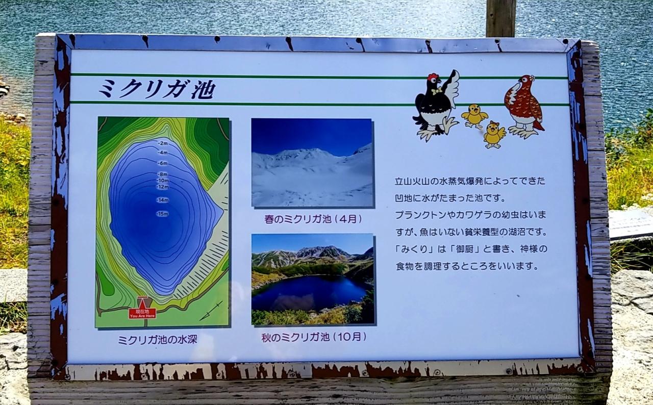 みくりが池の紹介看板。