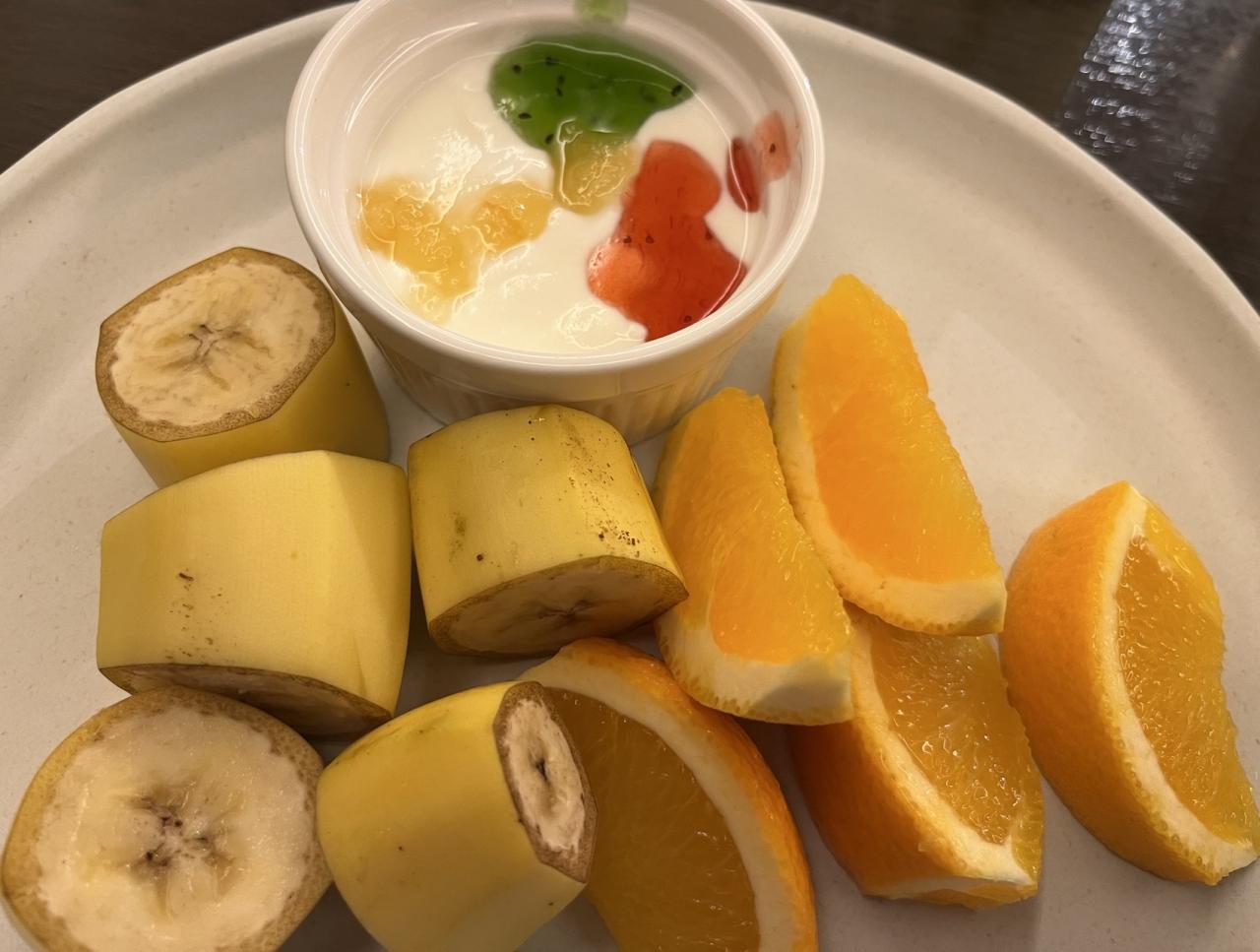 バナナ、オレンジ、、ヨーグルト