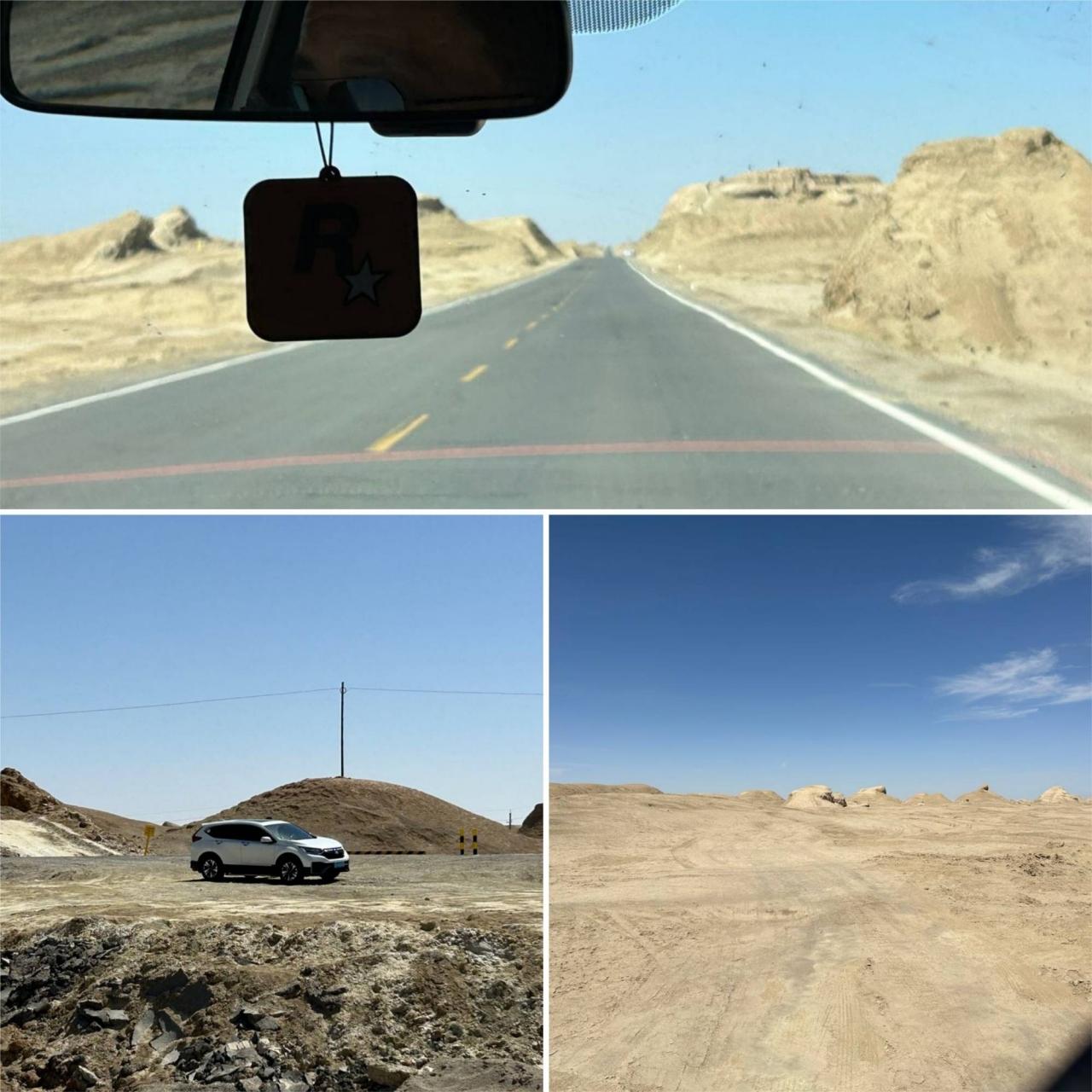 最近の社会問題ともなっているそうで、砂漠地帯をオフロード車で激走する輩がいるらしいです。平らに見えても段差があったり、崖になってたりしての事故や車両故障等での遭難もあるとか。 -
