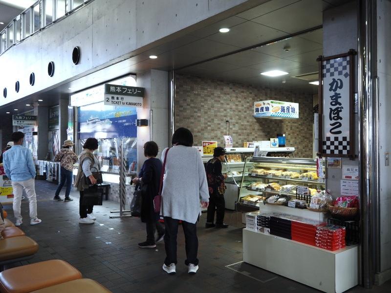 港には、停泊中の九商フェリー「フェリーくまもと」が見えます。