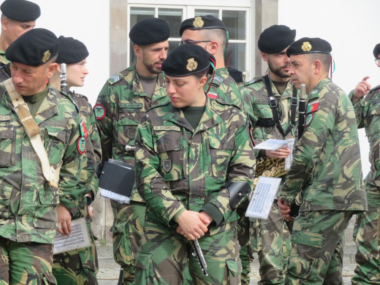 何かのセレモニーでしょうか?ラッパ隊の演奏で規律正しく街に行進をしていきました。