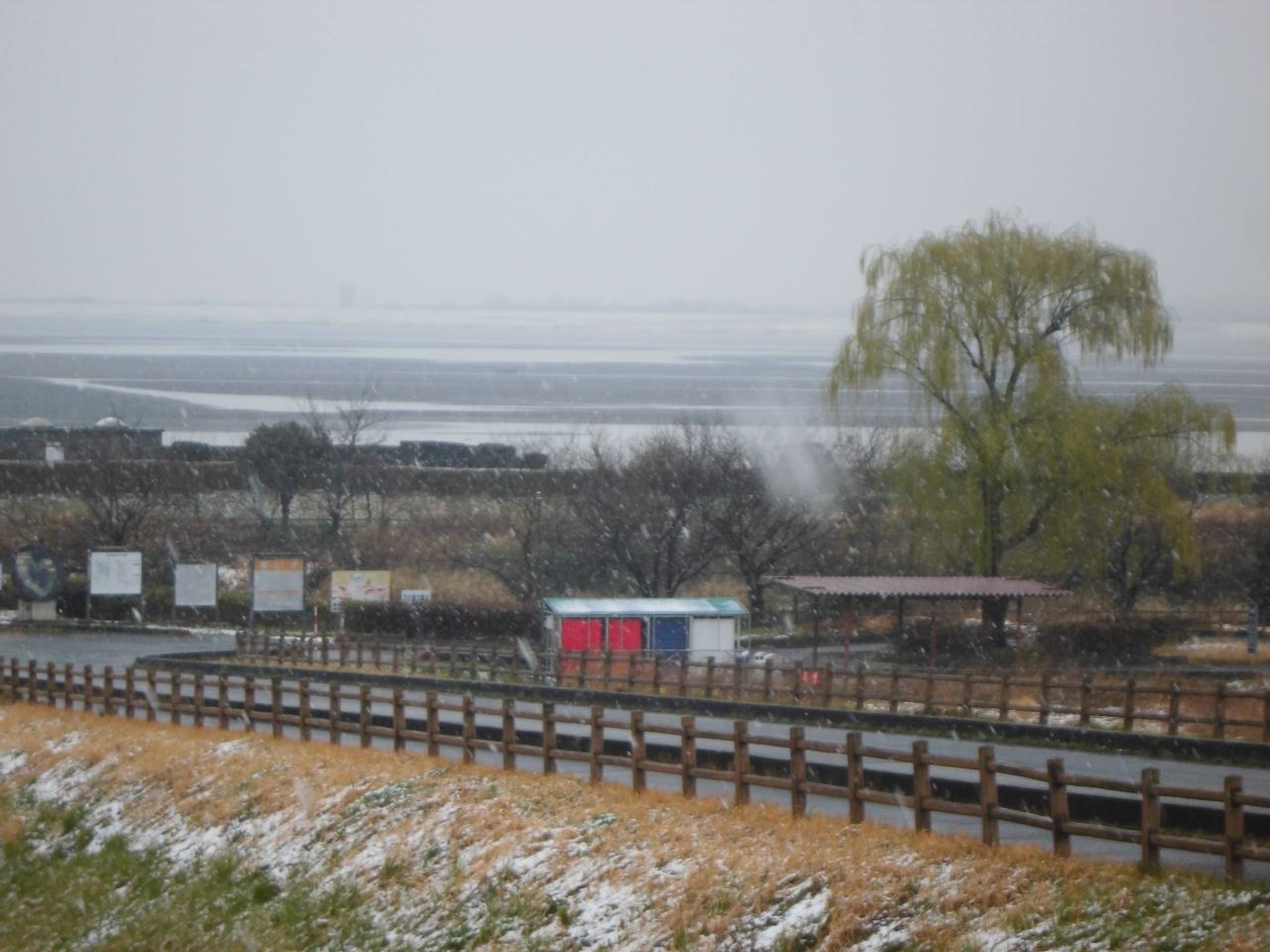 雪が降っているなかでも菜の花はきれいに咲いていました。