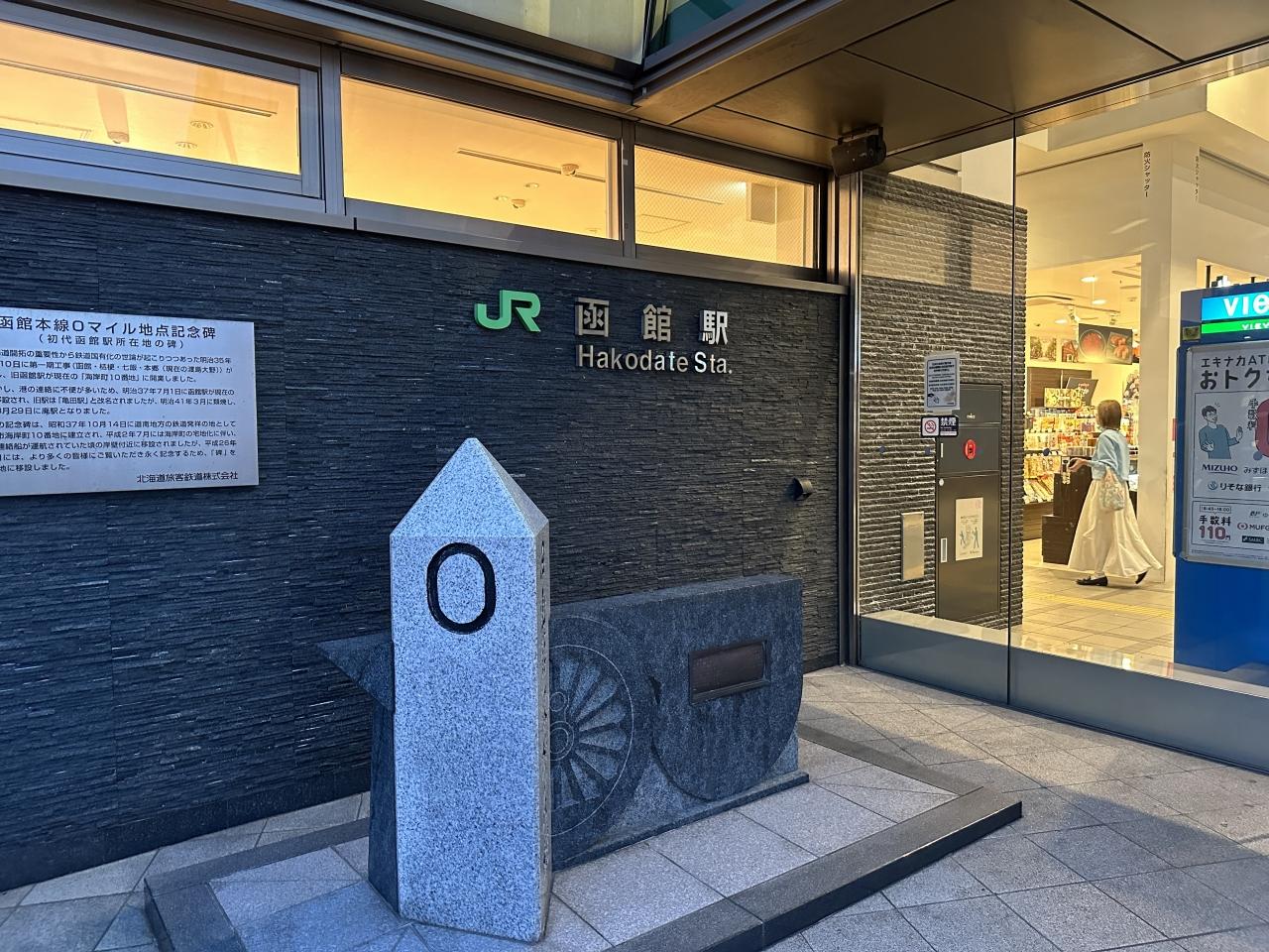 夕飯食べに出かけます 函館駅のゼロキロポスト