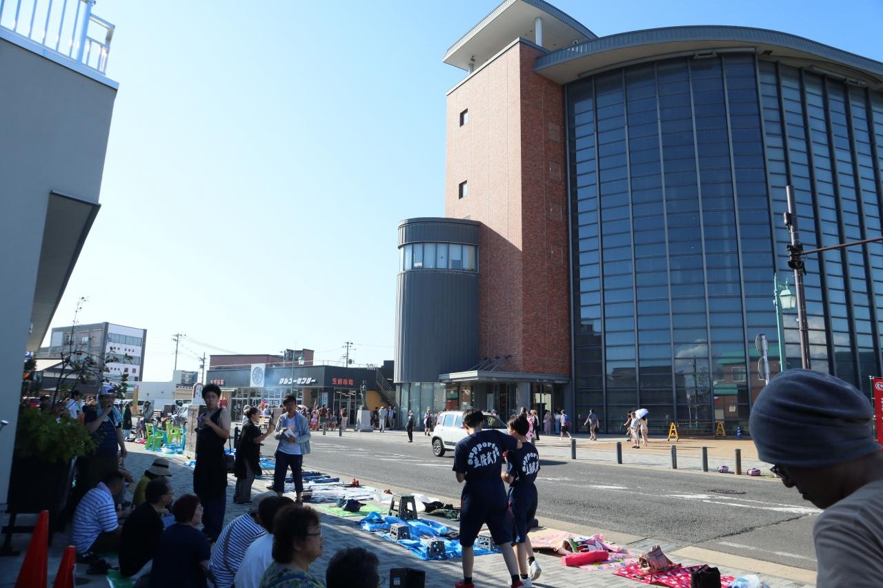 立佞武多の館前は人気スポットなので、もうかなり場所取りされてます