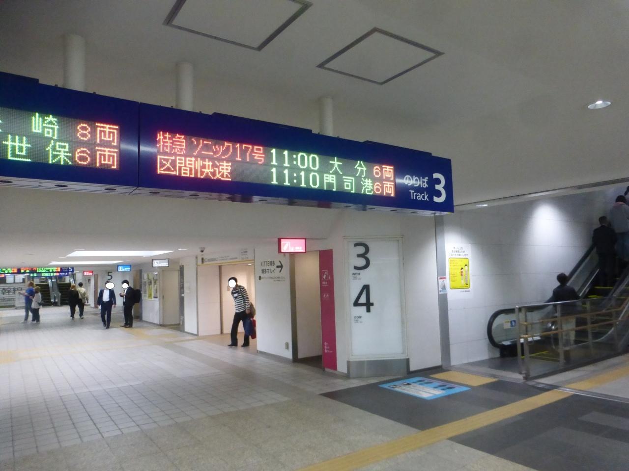 なので、キャリーケースが入る青いソニック(883系)になるべく乗るようにしているのですが、今回はこの11時発優先で選択したのです。 -