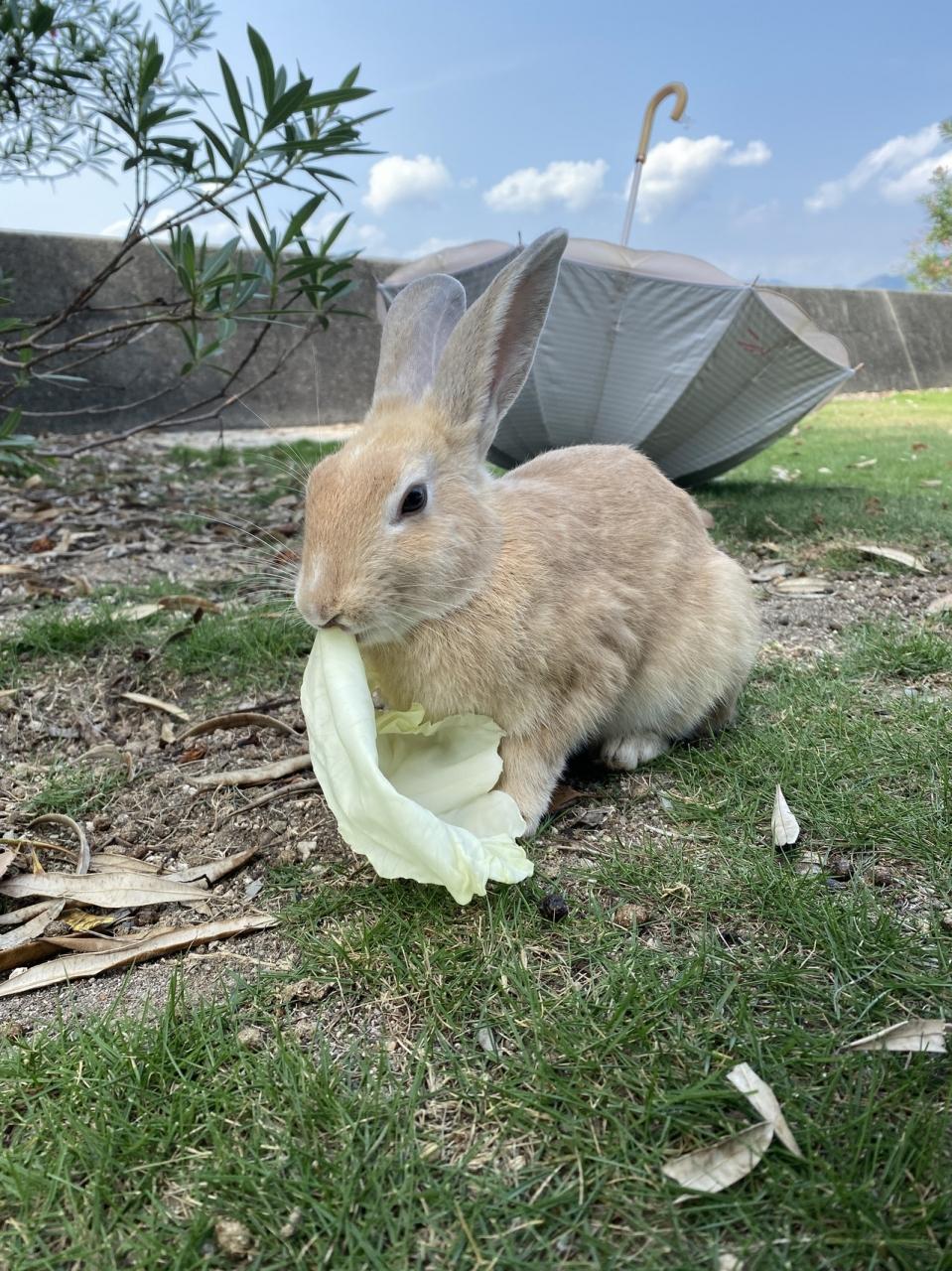 日傘を奪われたので、キャベツで返済します。どうも、キャベツとニンジンは食べ残しが転がっているくらいの食傷ぶりでした。
