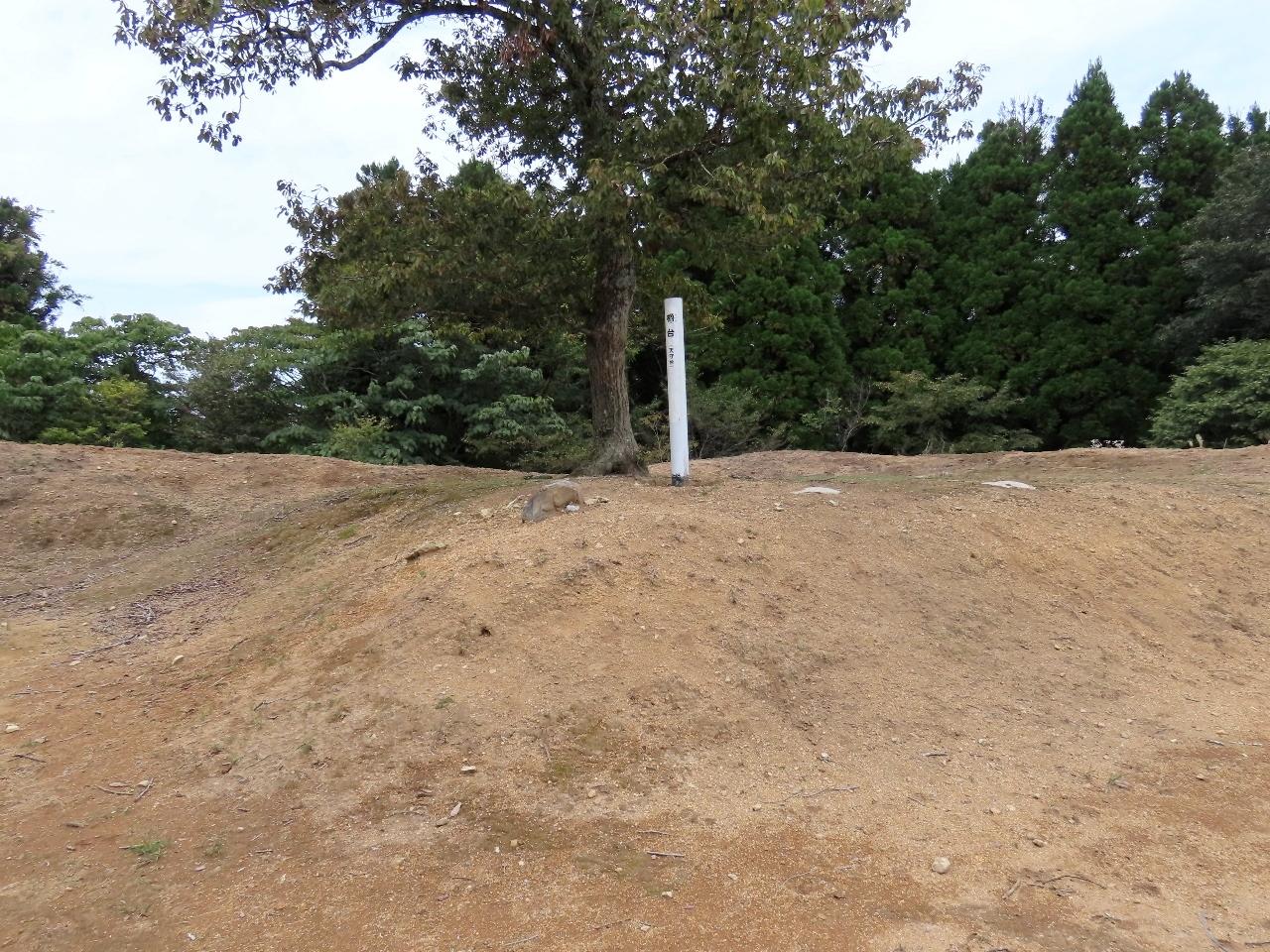 石段を登りきると広場があり、本丸跡があります。写真左の木の横から上に上がることができます。