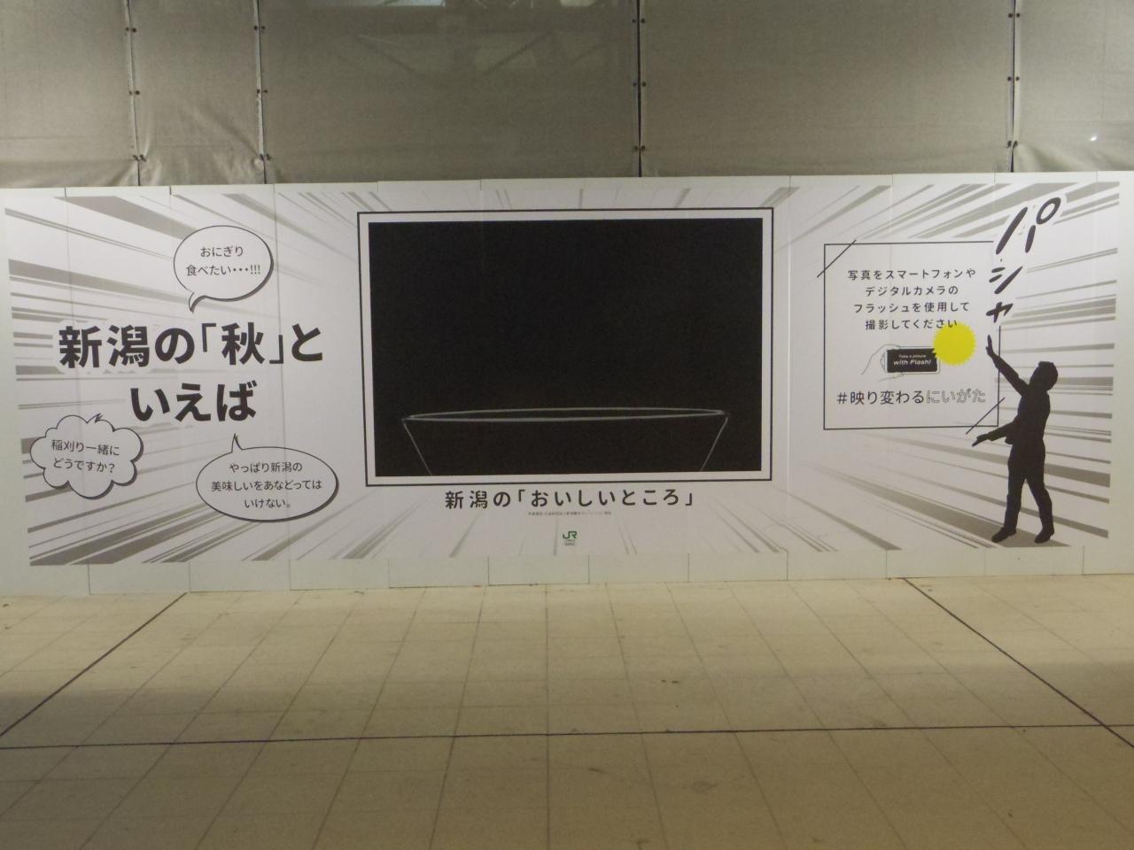 昨日、鶴岡のホテルでTV見てたら、新潟駅に変わった広告があるって言ってた広告見つけた♪