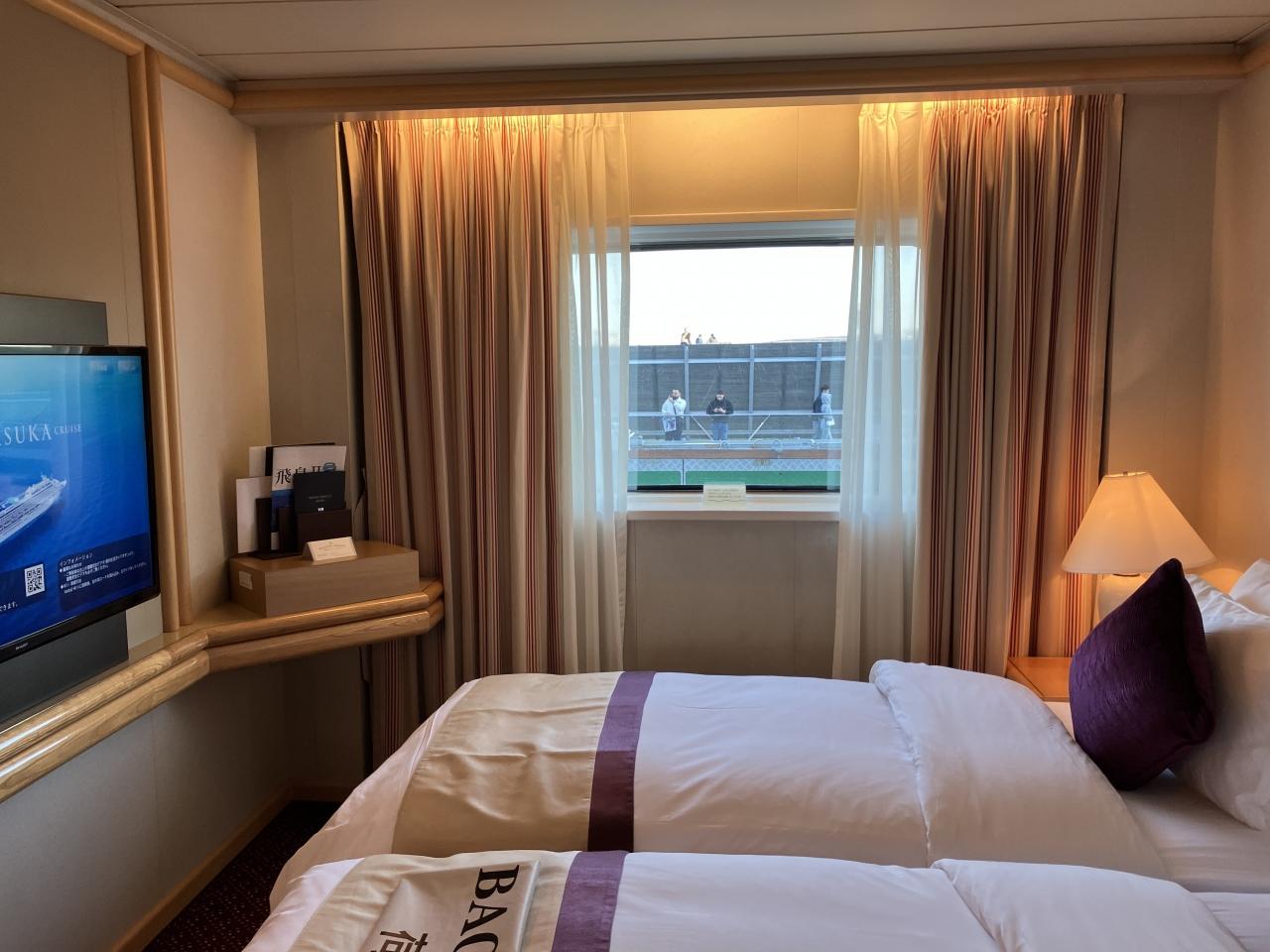 3日目の朝、神戸港入港 早朝飛鳥船内散歩