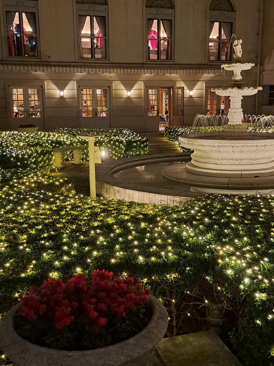 イルミネーションを楽しみ,ザ・カフェでテイクアウトメニューを受け取ります。