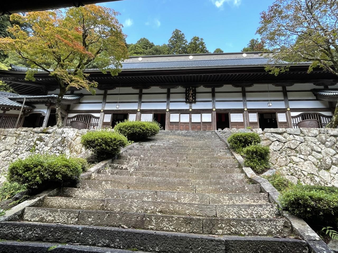 石段に並行して屋根のついた木製の階段を上ります。修行僧の皆さんによって綺麗にお掃除されています。スリッパでは滑ってかなり歩きにくいです。