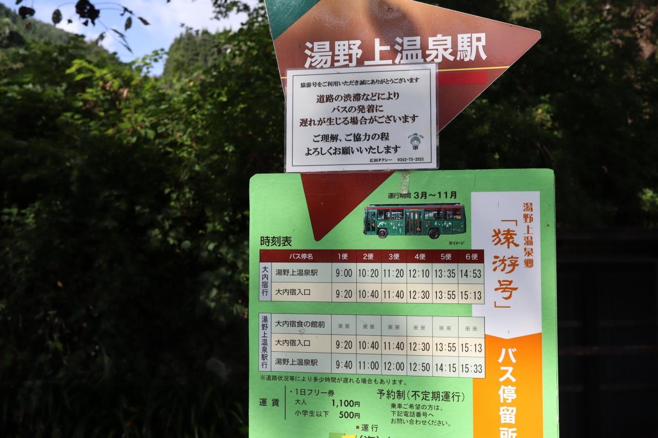 湯野上温泉駅から50mほど坂を下ると、「猿游号」バス乗り場