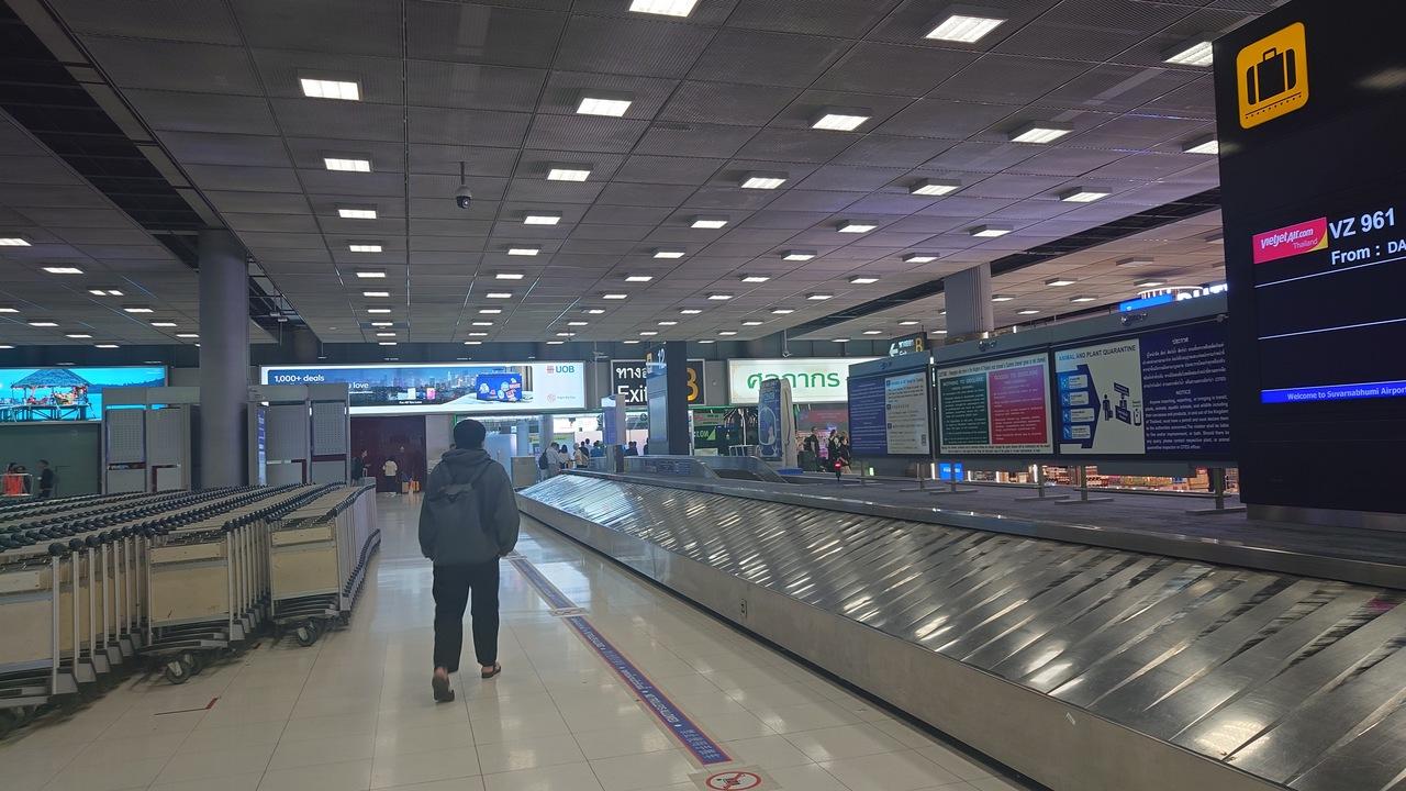 国内線はスワンナプーム国際空港左端のエスカレータで行きます。