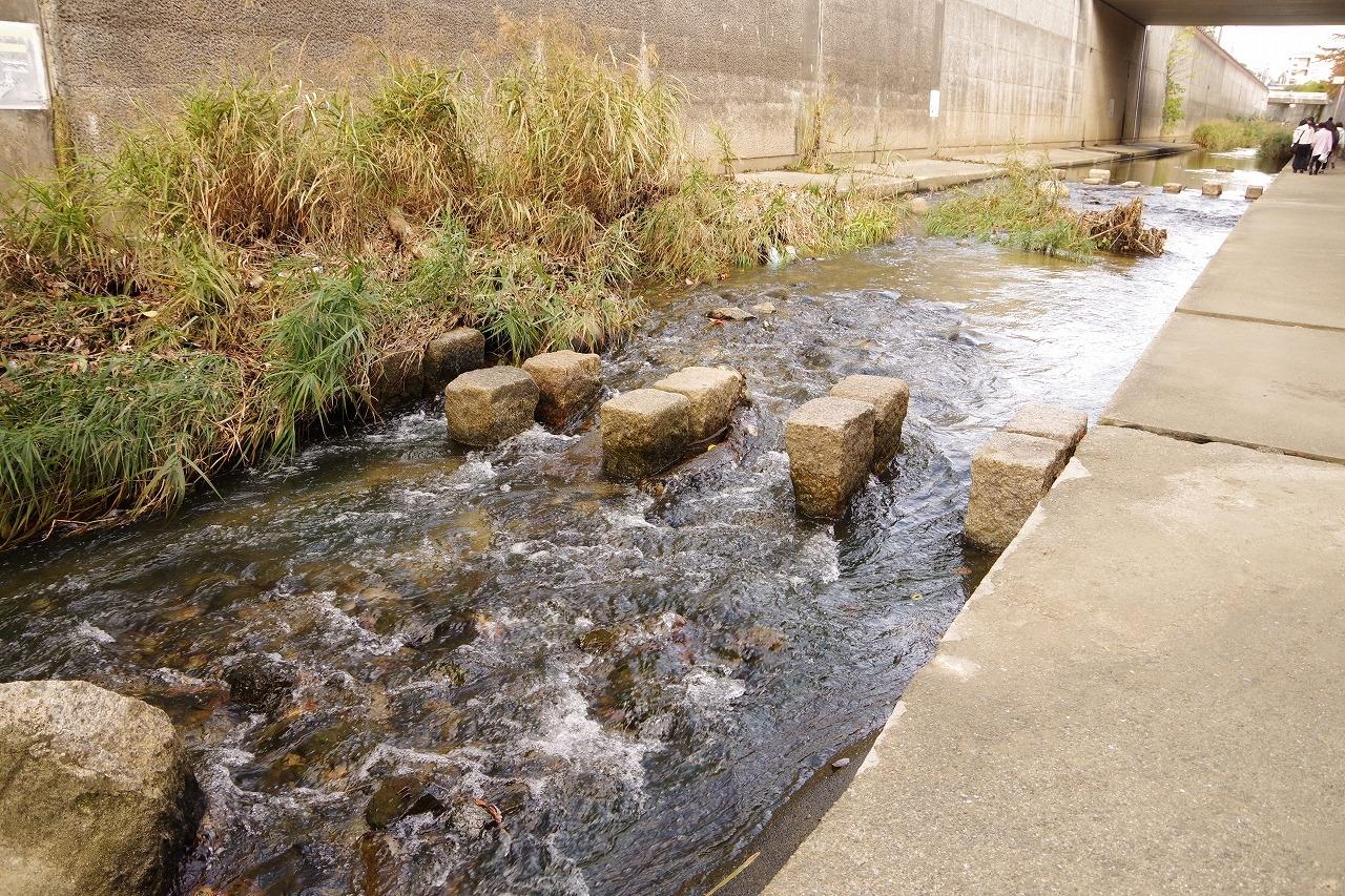飛び石の向こうは流れは穏やかです。