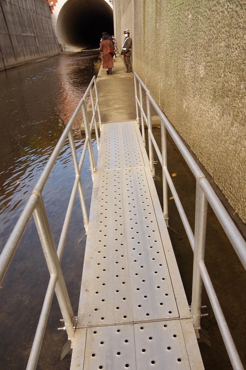 いよいよ湊川隧道へ入ります。形状的に歩く場所は斜めになりますから歩きやすくかつ滑らない靴で。