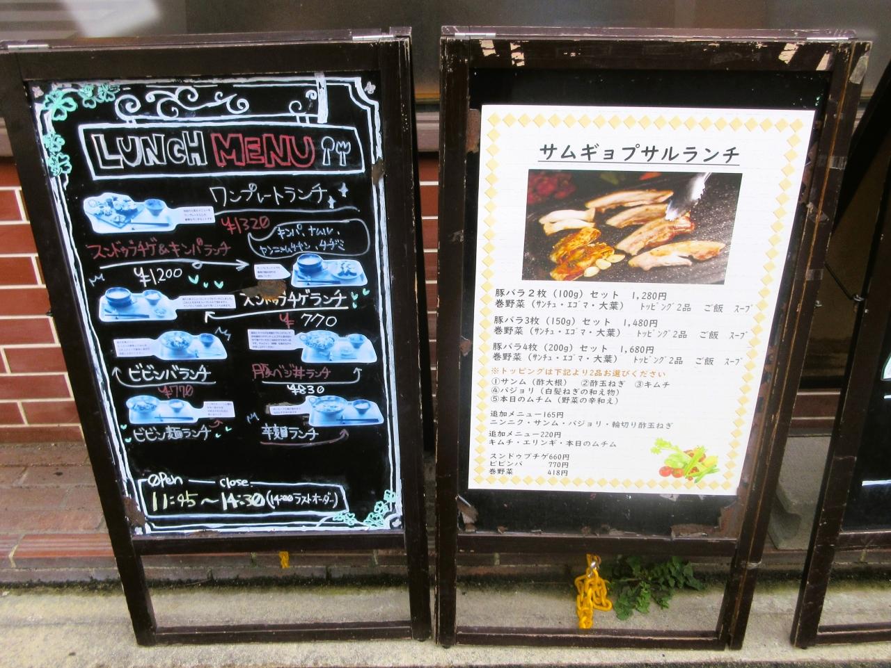 韓国料理のえんまん屋のキンパにチゲ、それに華さん食堂のトンカツ定食580円で凄くお安いですね。