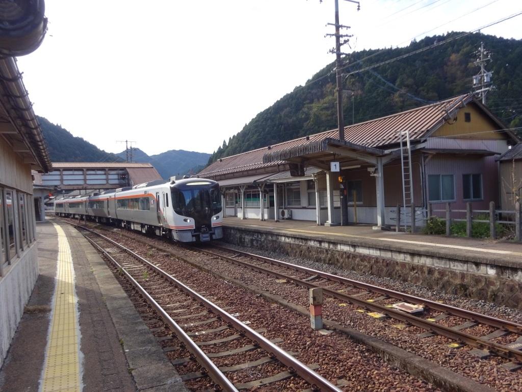 下り特急ひだ1号が到着。ここで特急どおしが交換。 -