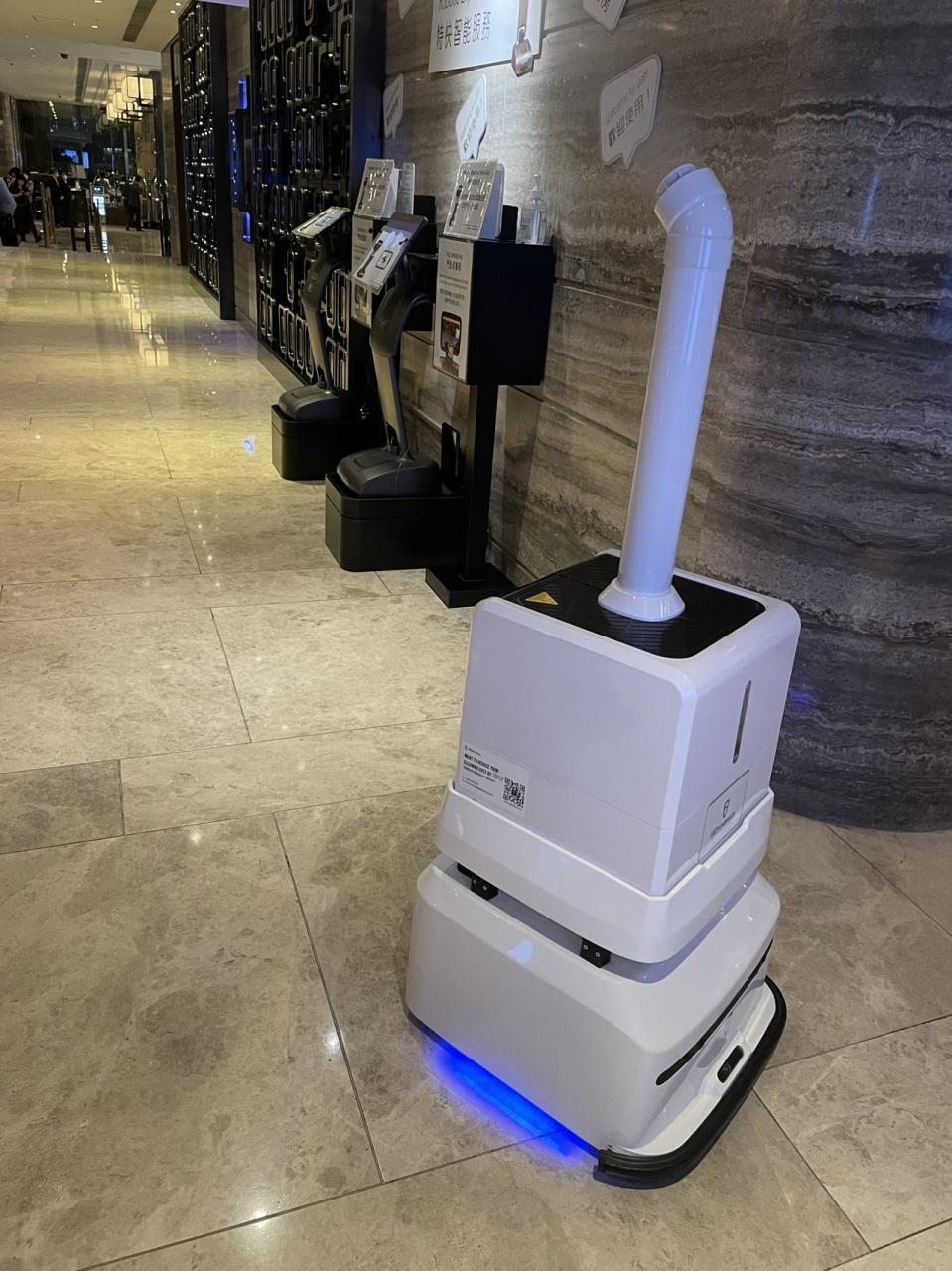 ホテル内、自動の除菌ロボットがウロウロしています。