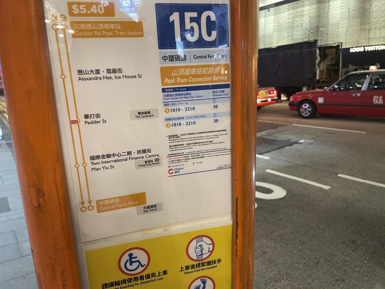 スターフェリーまで遠いので、ペダービル前からバス15Cに乗って。中環駅 駅