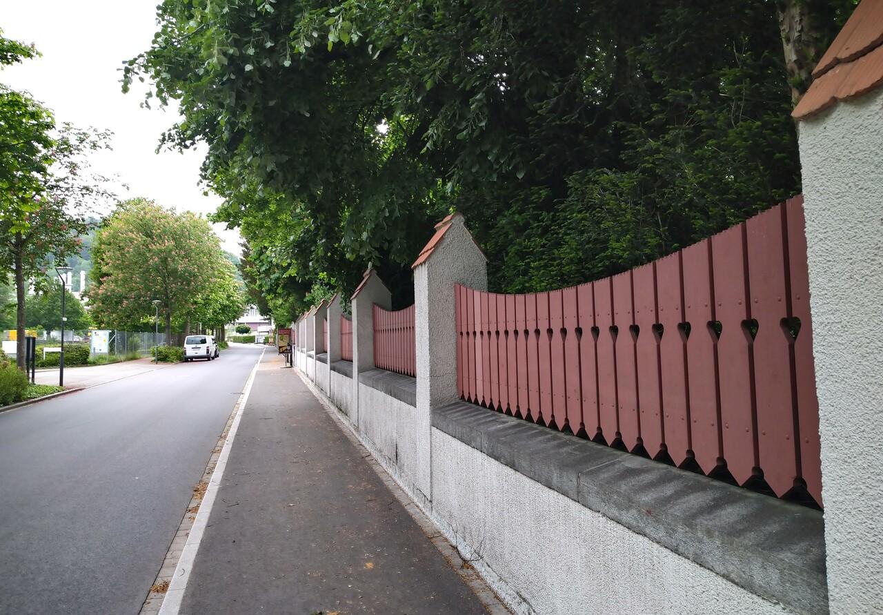 バーデン駅を出てパーク通り/Parkstrasseを左手に進むとレーマー通り/Römerstrasse に突き当たるので、また左に進むと特徴的な塀が出てきます