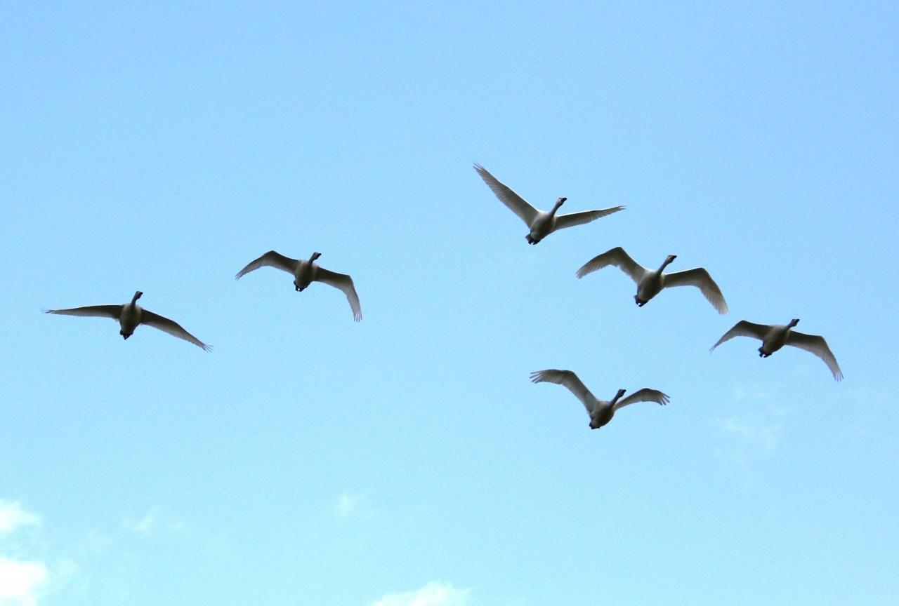 安来白鳥ロードのコハクチョウ 5機編隊