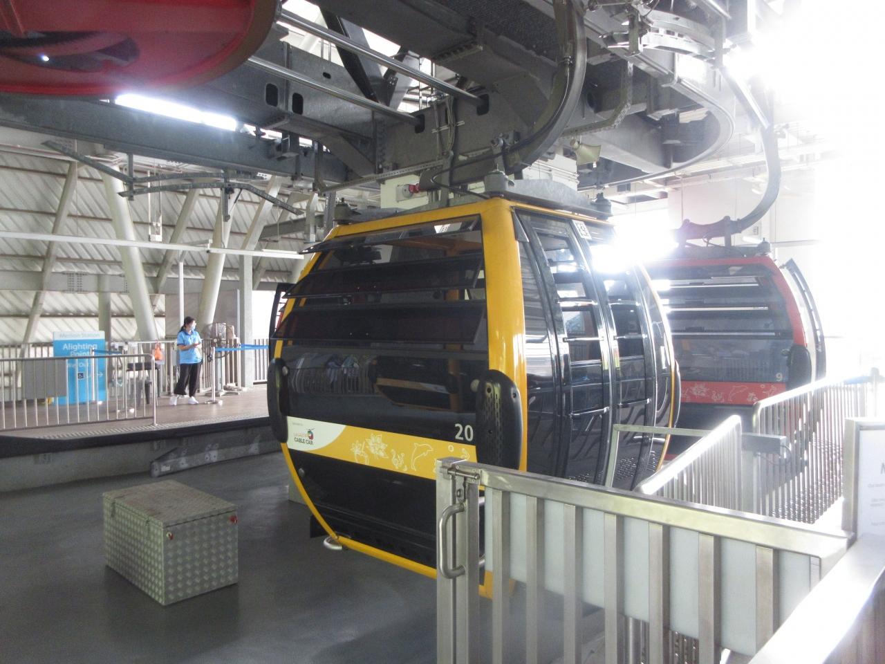 セントーサLINEのロープウェーはキャビンによって色が違います。黄色いキャビンが来ました。黄色の次の赤いキャビンに乗りました。