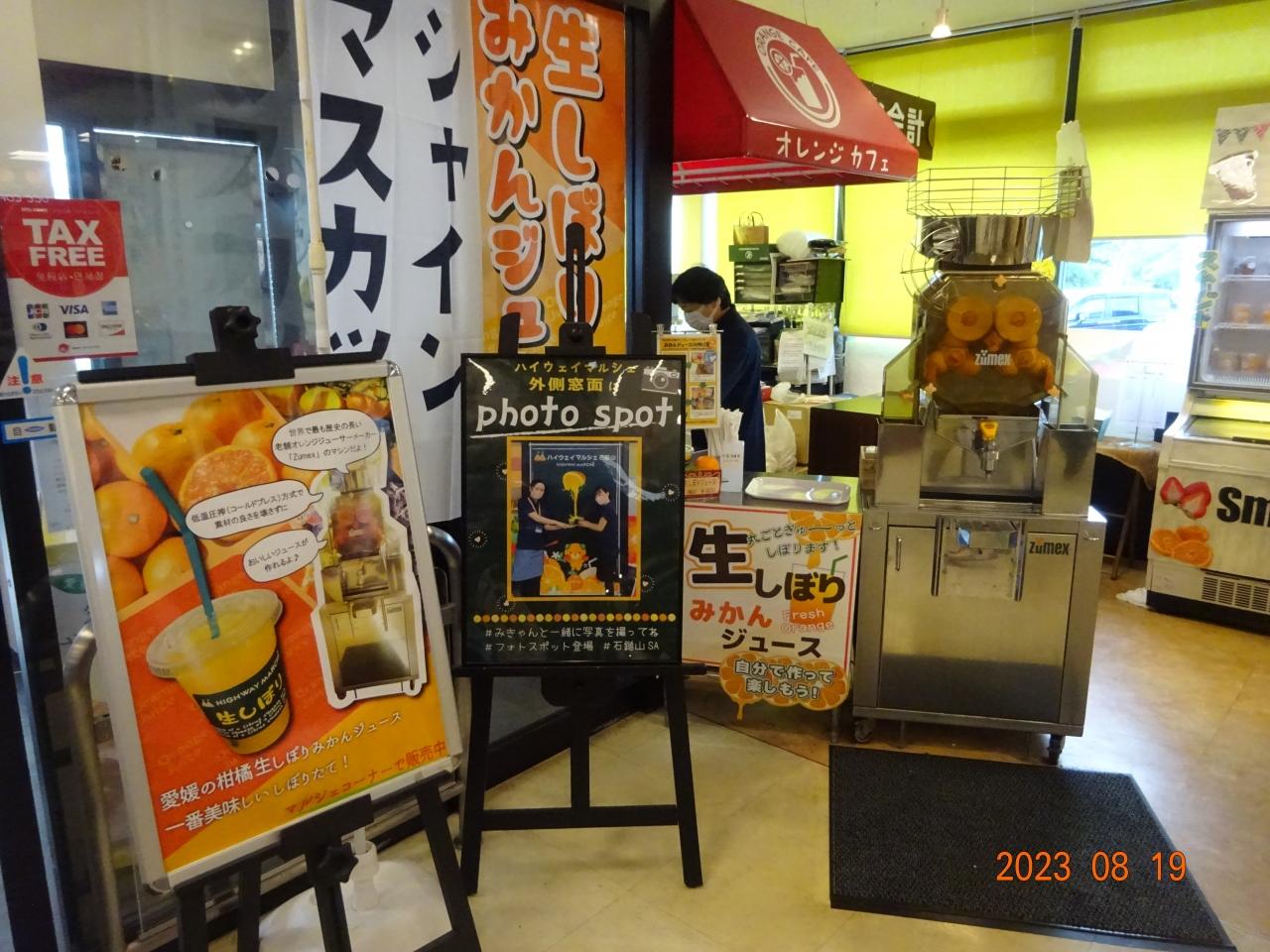 石鎚山SAで飲んだ生搾りジュースの機械ですが、次男の情報(情報源はほぼYouTube)によると愛媛じゃなくてもあちこちに同じ機械があるとか^^; ただ、使っている素材が地元産だと思うので、ここならではの飲み物ではないかと思います。