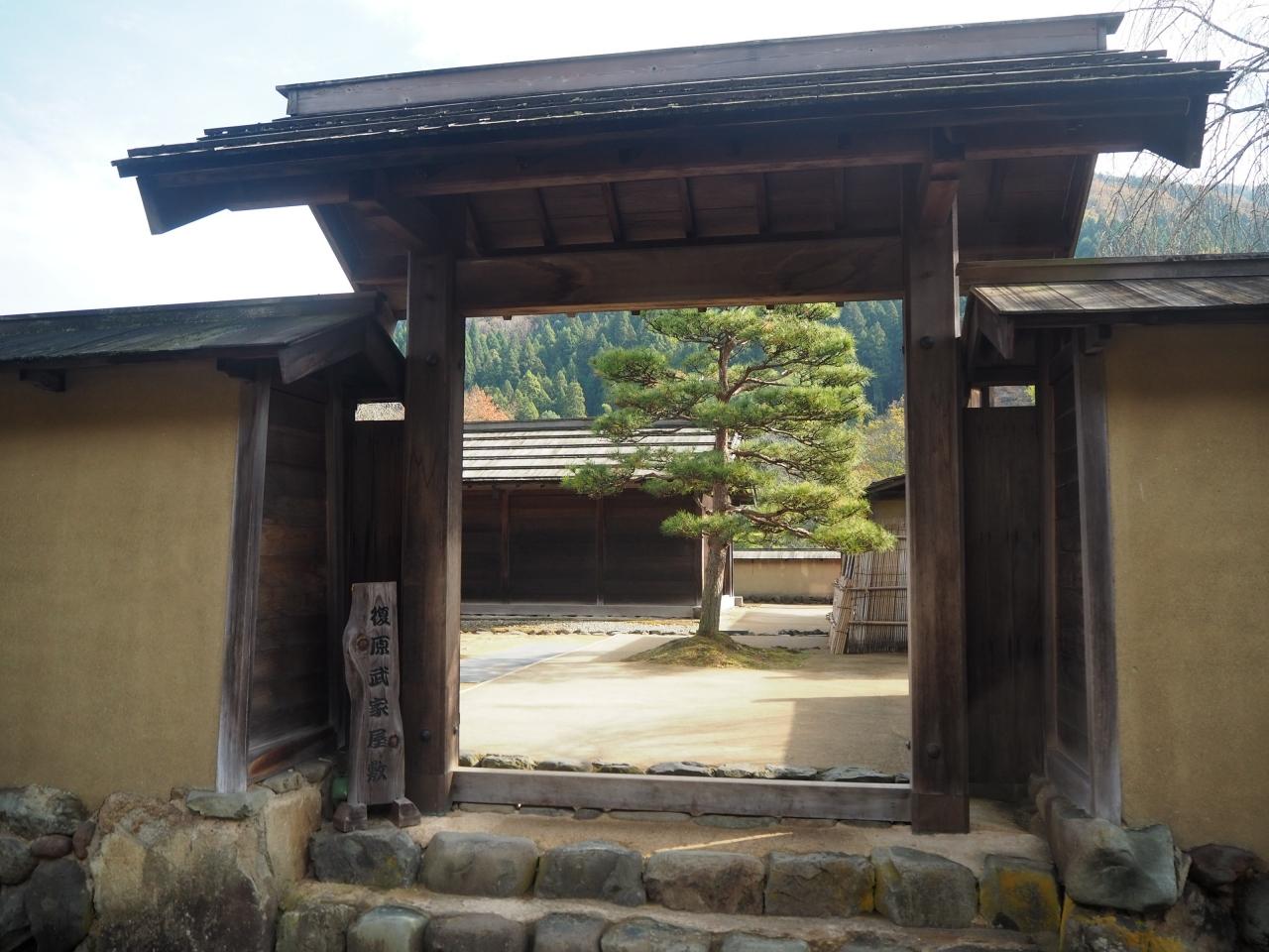 復元町並みを出ると道路の反対側に唐門が見えています。