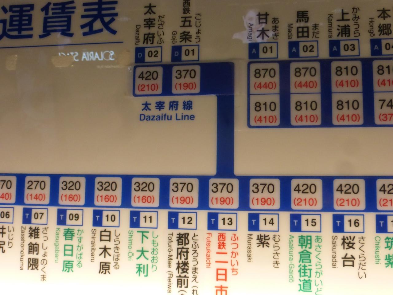太宰府行きの時刻表です。