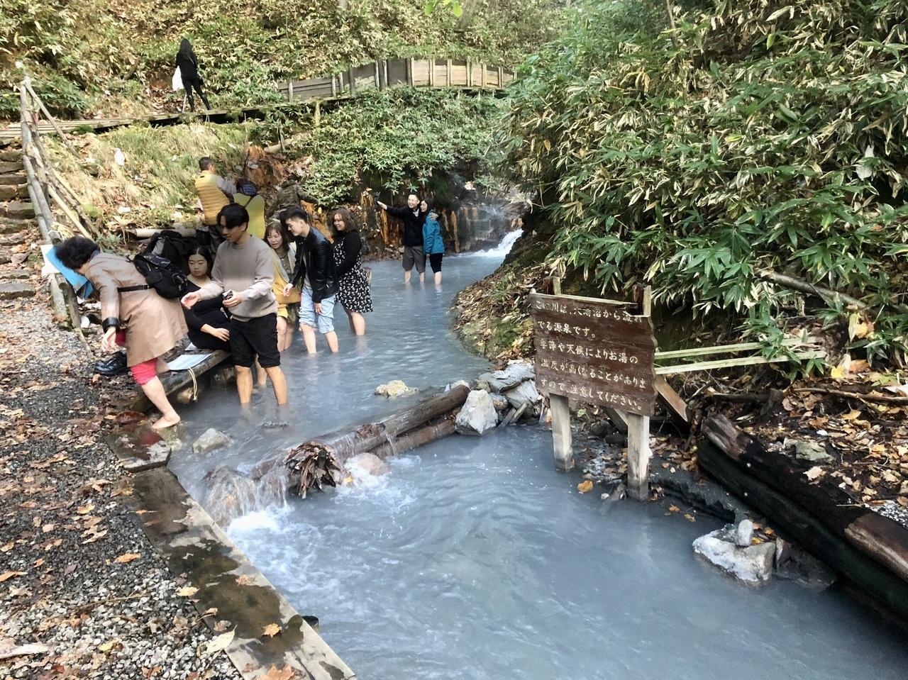 日本でここにしかない、温泉の川が流れ、そこが足湯になっている所です。大湯沼川天然足湯 温泉