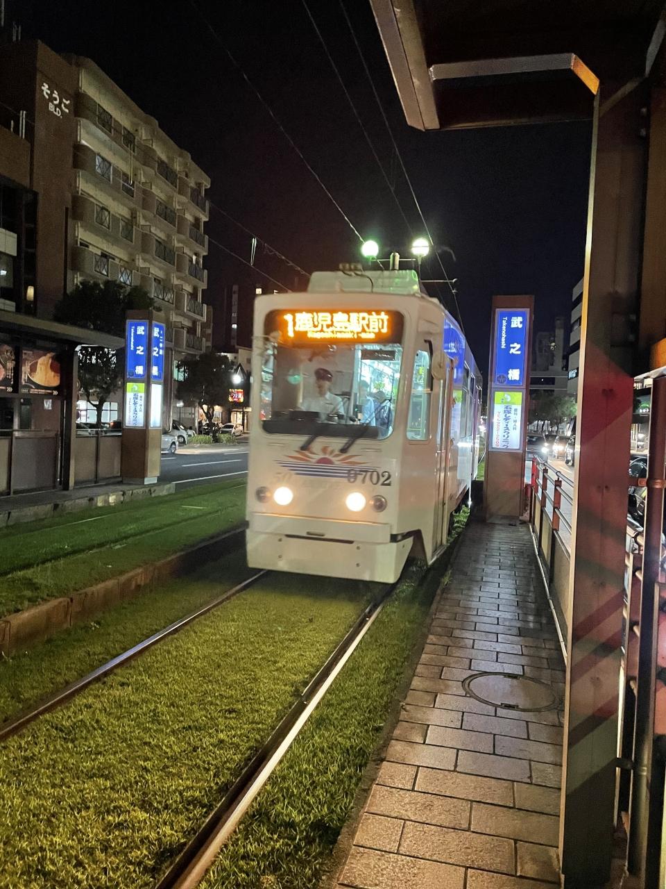 シェラトンホテル鹿児島は、鹿児島中央駅へも天文館へもちょっと歩くには遠いです。しかし、ホテルの目の前が市電の停留所になっていて、ここから天文館へも行けることがわかりました。昼間、買った一日券がまだ使えるじゃないですか。しかも私、市電が大好きです。市電のある街はどこも好き。