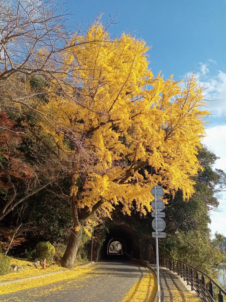 トンネルを抜けると真っ黄色で美しいイチョウの木が現れます!