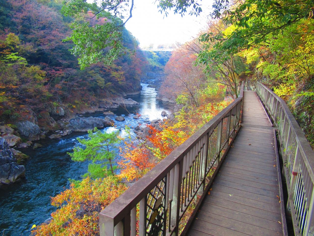 はねたき橋に到着。ゆっくり歩いても30分ほど。紅葉が見ごろで、ちょうどいい、心地よい遊歩道だった。