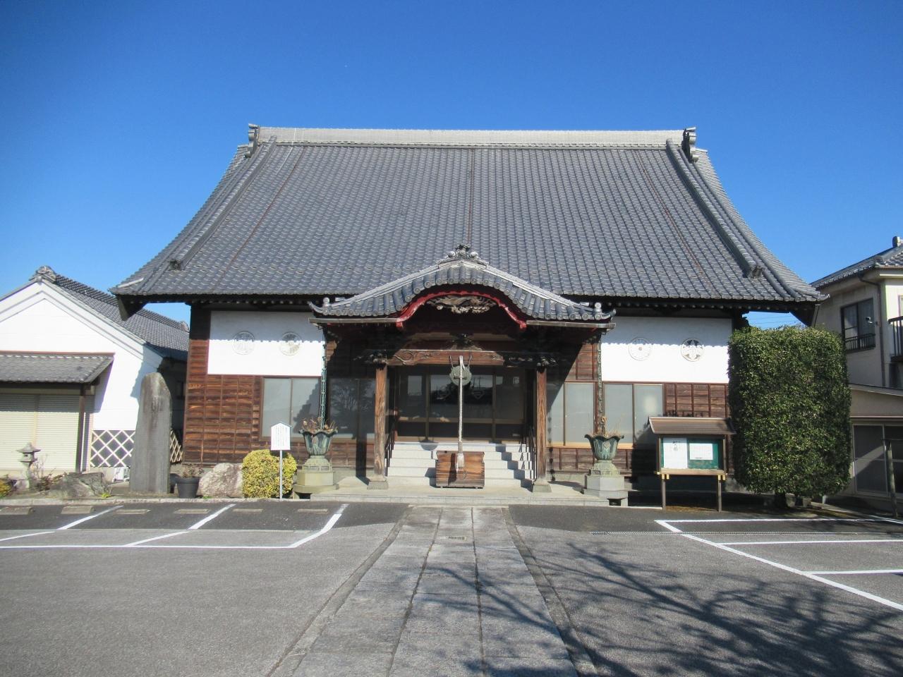 1326年に創建された日蓮宗妙音寺に来ました。表通りに併設の幼稚園があり、その奥に駐車場があります。木造瓦屋根の本堂のガラス扉から堂内を見ることができます。本堂と寺務所をつなぐ赤い太鼓橋のような渡り廊下が印象的です。