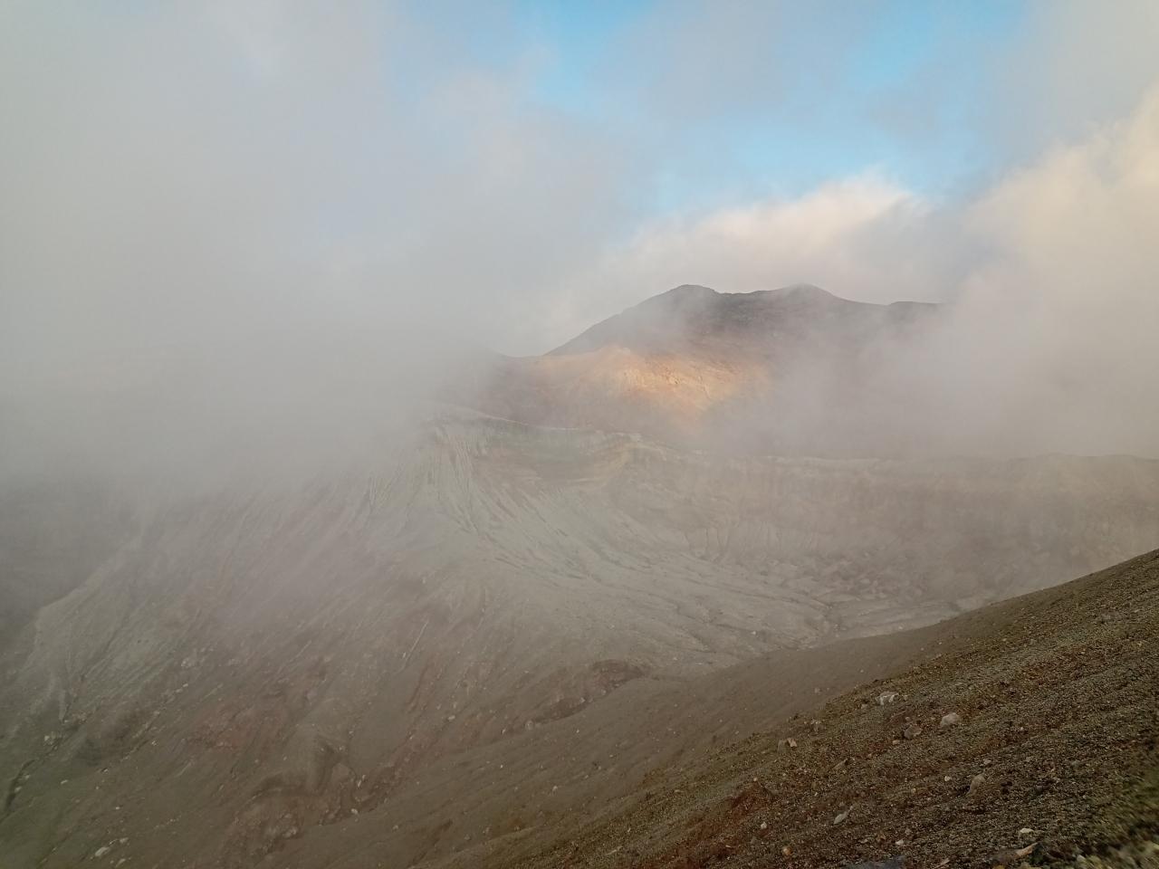 雲で隠れていた火口のバックの山が現れました!壮大で幻想的な光景に絶句します!