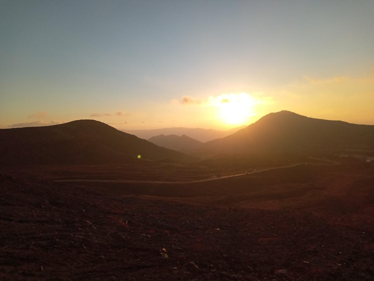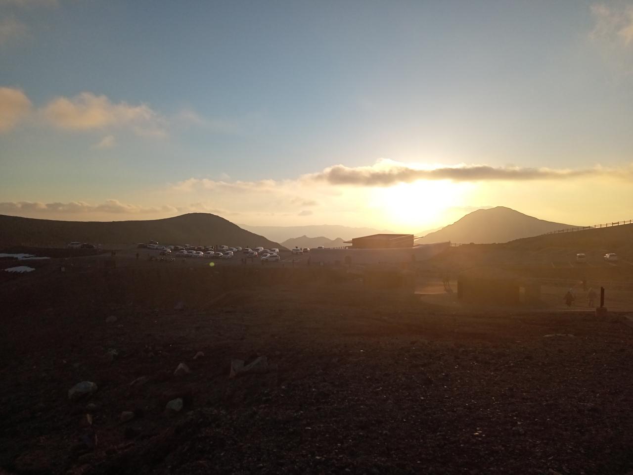 クレーターが青空の下、夕日に照らされて別世界のような美しさです!絶句して何の言葉も出ません!