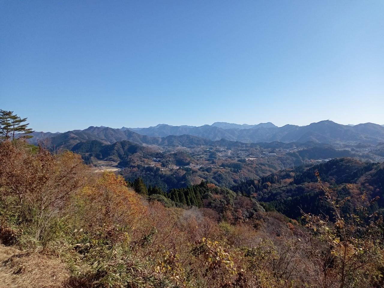 正面の低山、青空の下で綺麗ですね。