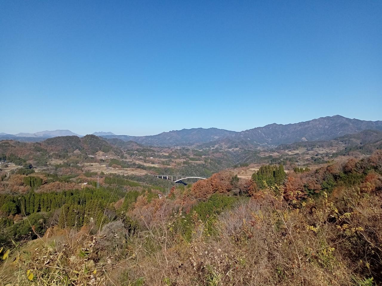 正午前、高千穂の街を後にして、熊本県、大分県に戻ります。雲一つない艶やかな青空の下、美しい山々!運転していて実に気持ちが良いです!