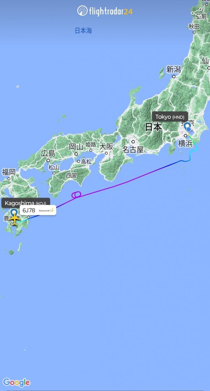 鹿児島15:40発⇒羽田17:25着(SNA78)