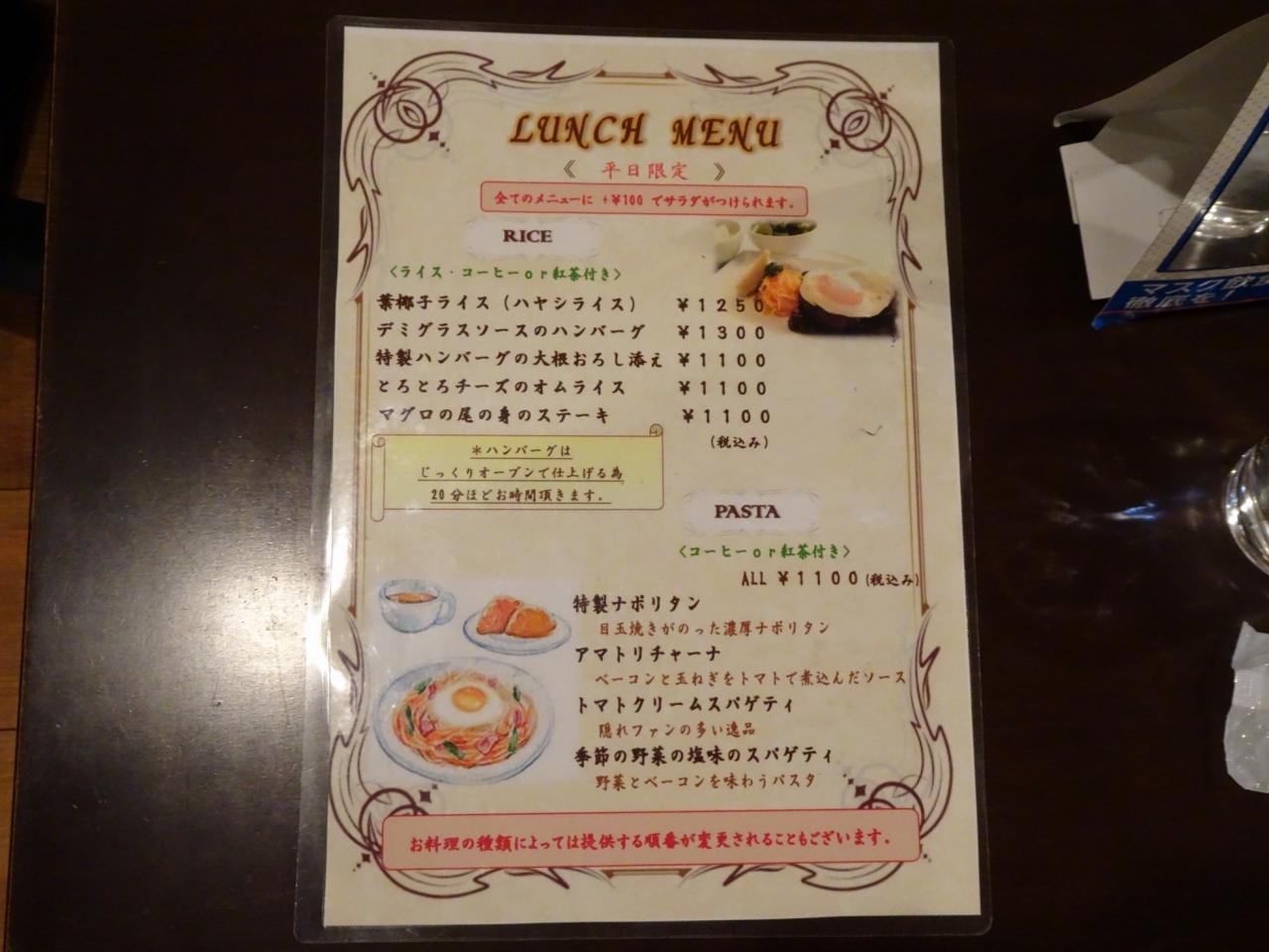 店名の葉椰子(ハヤシ)ライスにも惹かれるけれど、ハンバーグにしてみよう。